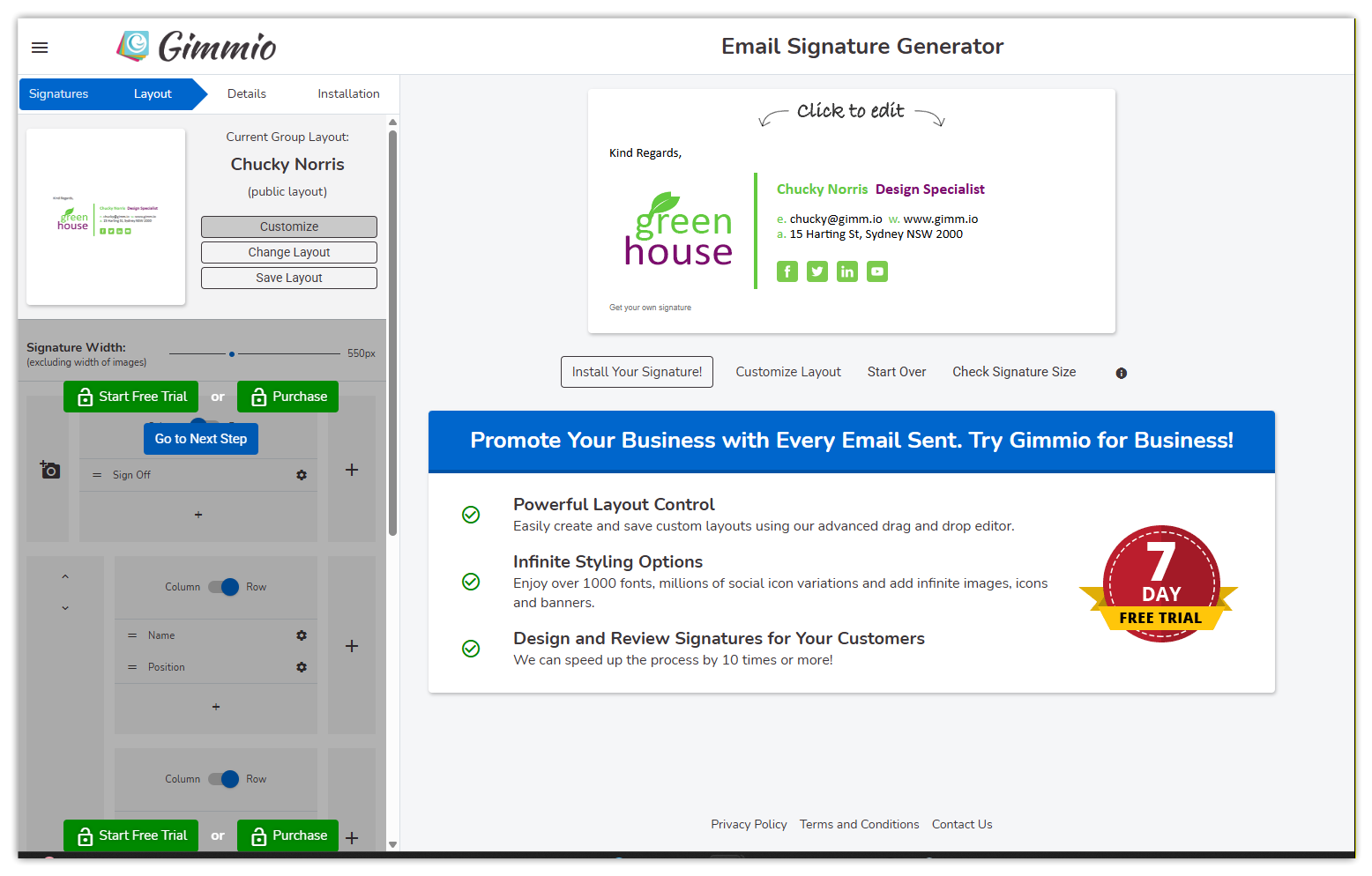 It’s also one of the few tools that can generate very unique layouts. Some signatures look more like small profile cards than signatures, which is fun for creative industries.