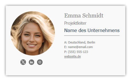 Füge nur die wichtigsten Informationen ein: Name, Berufsbezeichnung, Unternehmen, Telefonnummer und Website.